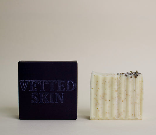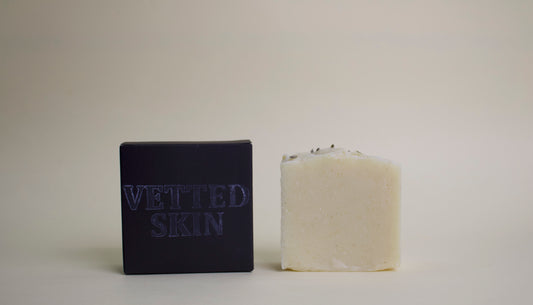 Every Vetted Skin bar begins with our signature base — a nourishing blend of grass-finished beef tallow, organic olive oil, jojoba oil, shea butter, raw goat milk, and cow colostrum. This unique combination feeds the skin with vitamins, essential fatty acids, proteins, and probiotics that cleanse gently while restoring balance.